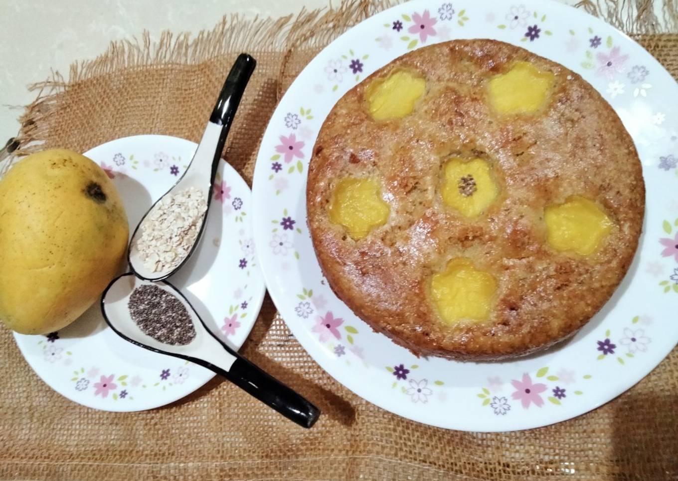 Oats,chia seeds and mango tea-time Cake