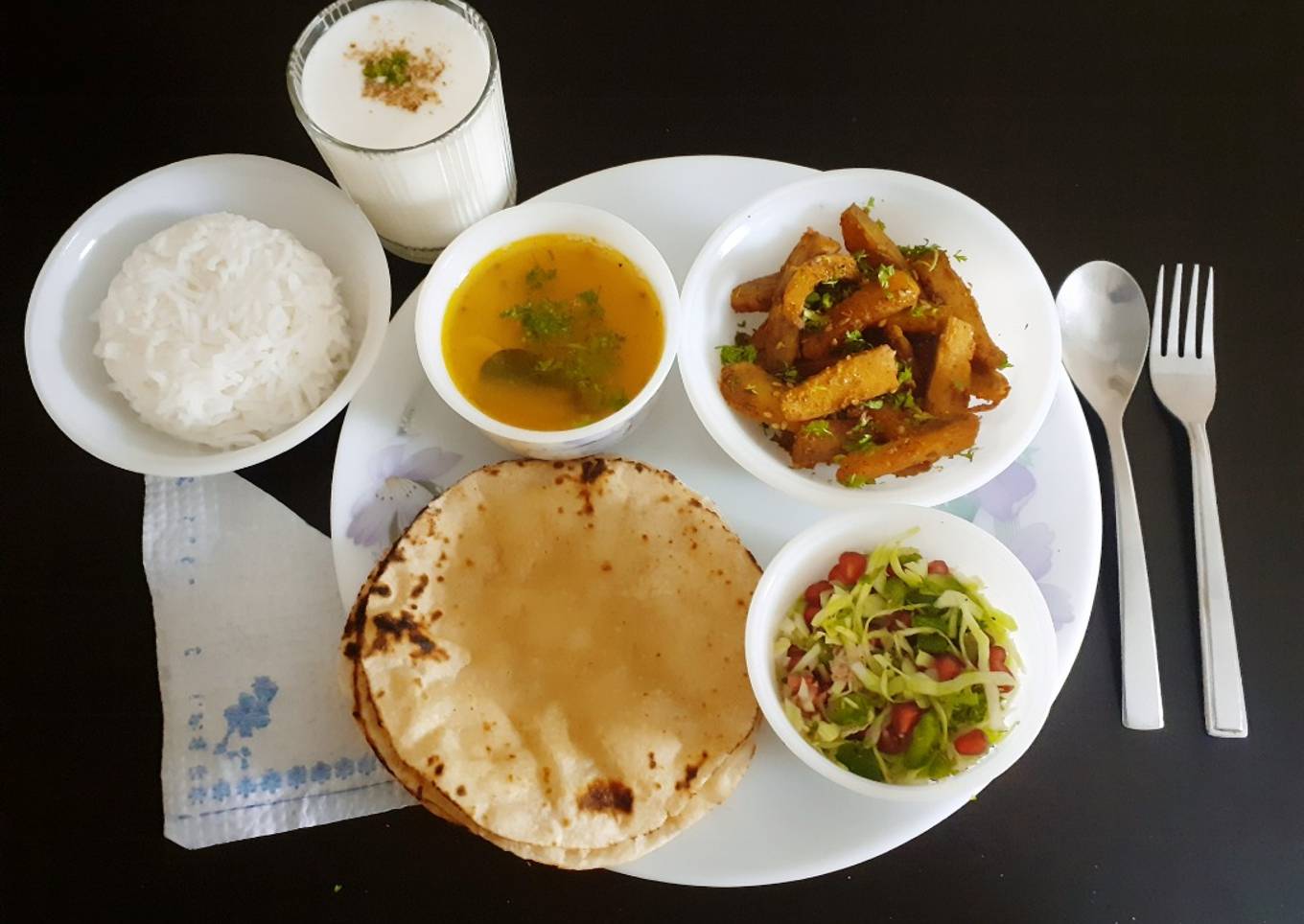 Eating veg sabji,roti,dal, boiled rice, and salad, buttermilk in lunch is staple food in every household.