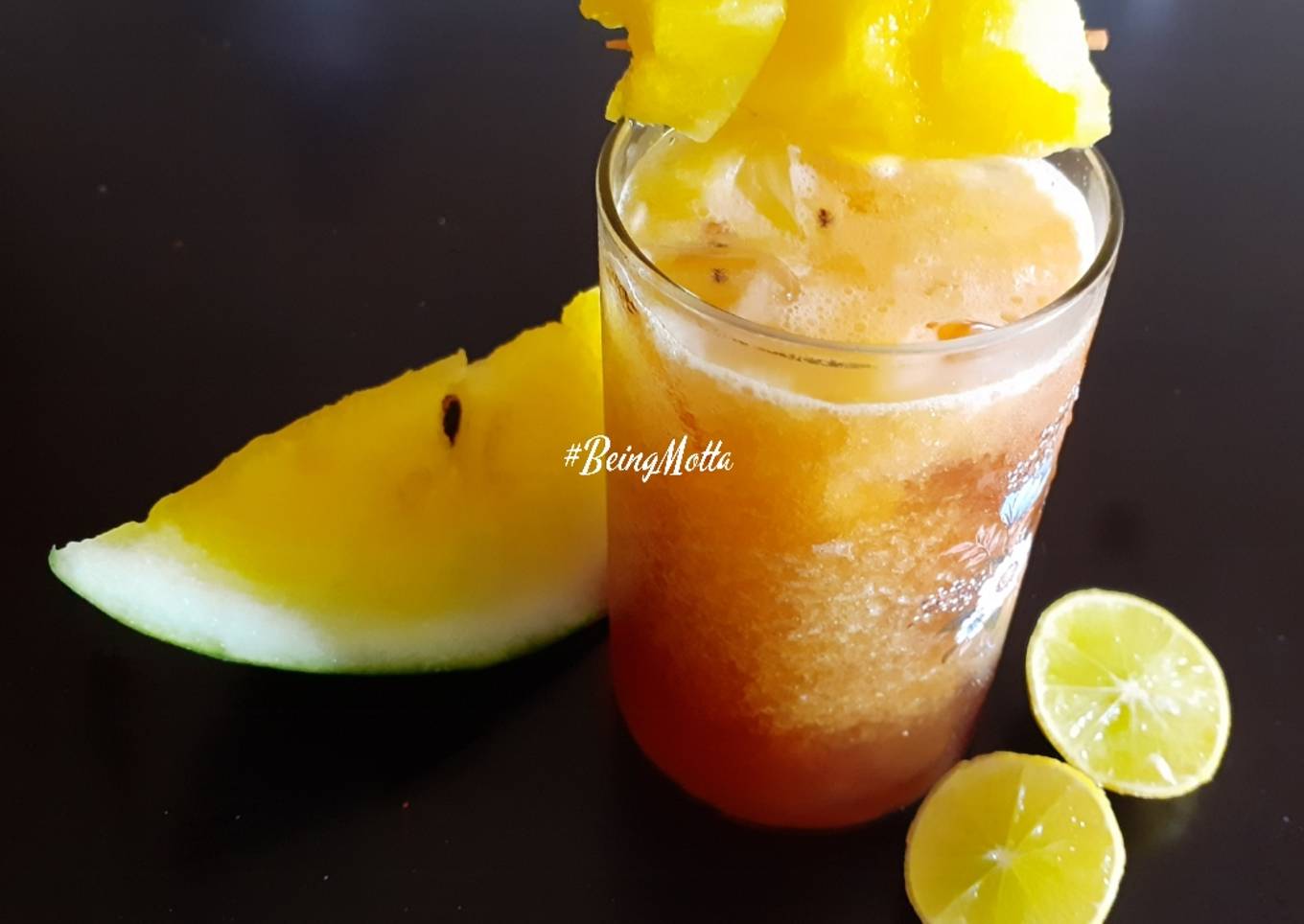 Cool , refreshing beverage prepared with yellow watermelon juice,chilled tea and lemon juice.