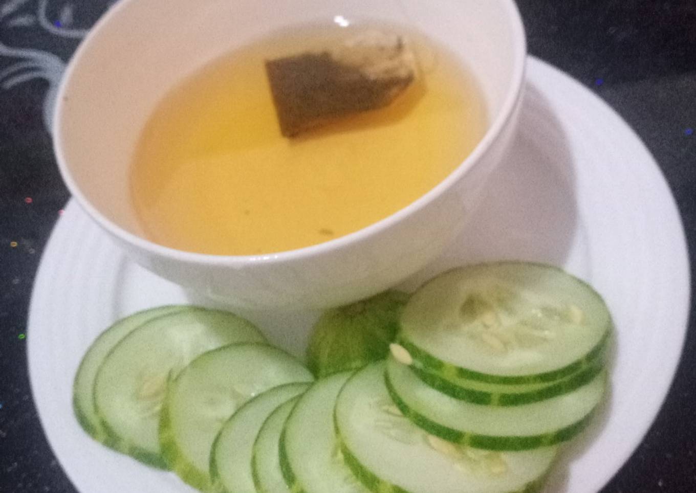 - Slice your Cucumber, in your cup with tea add hot water to it, allow your tea to steam for 5 minutes. Enjoy your healthy breakfast