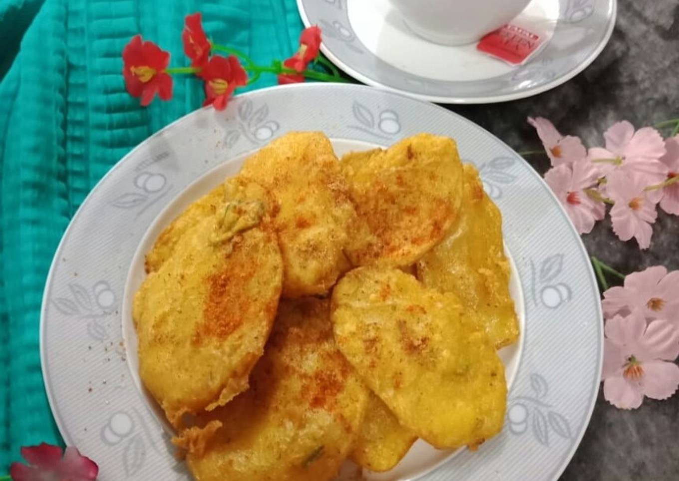 Aloo ke pakoray with green tea
